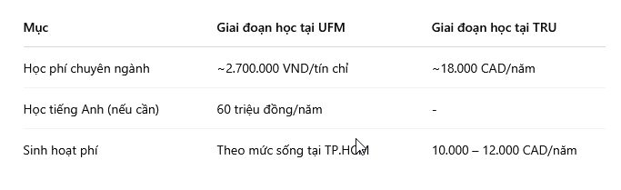 Lưu ý: Chi phí học tập và sinh hoạt phí tại Canada là mức tham khảo tại thời điểm năm 2025, có thể sẽ thay đổi tại thời điểm sinh viên chuyển tiếp du học.