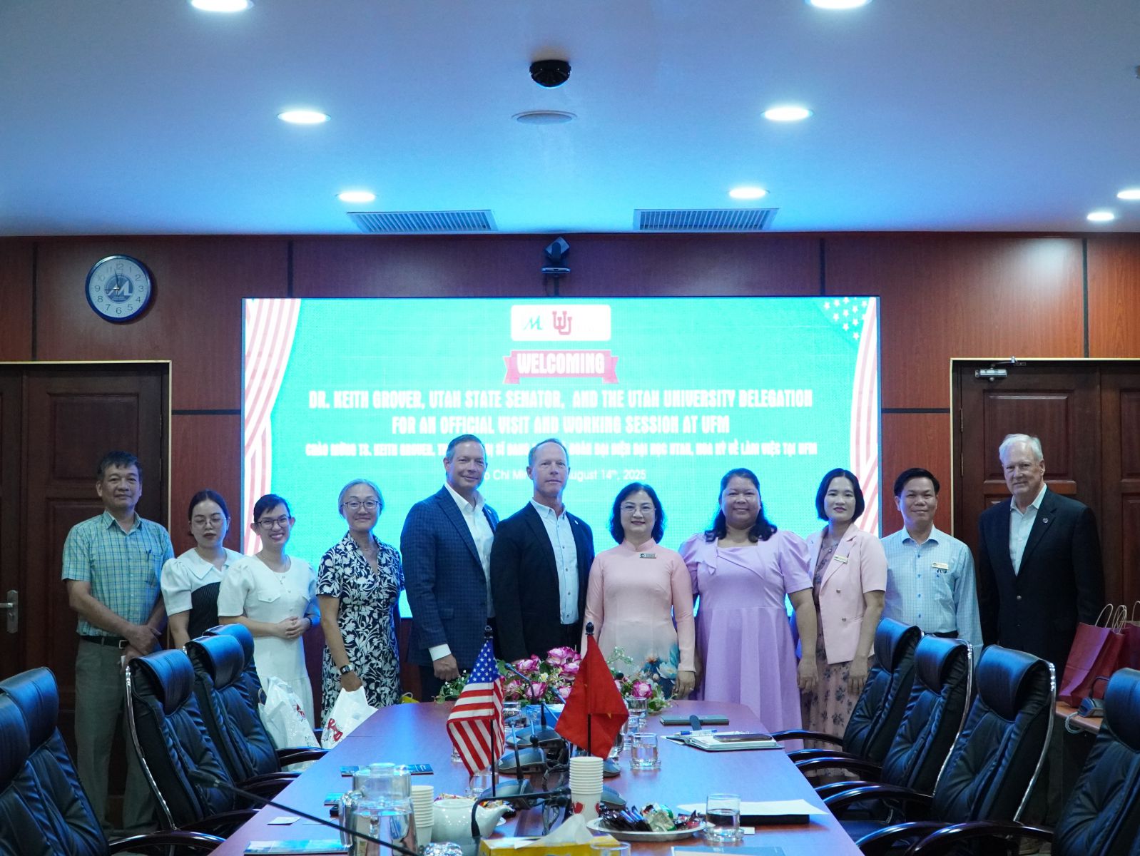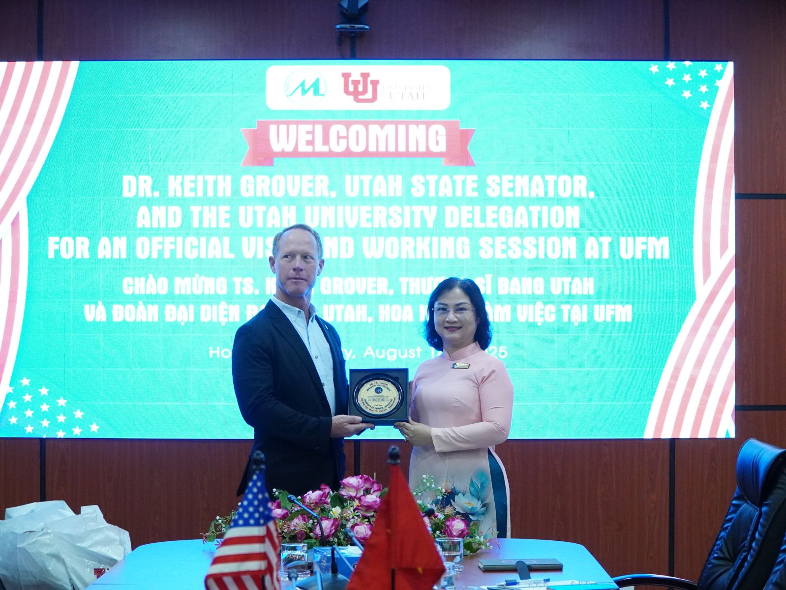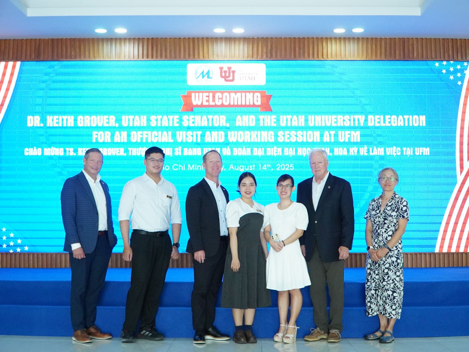 Ngày 14/8/2025, Trường Đại học Tài chính – Marketing (UFM) vinh dự đón tiếp Tiến sĩ Keith Grover – Thượng nghị sĩ bang Utah (Hoa Kỳ) cùng đoàn đại biểu Đại học Utah trong khuôn khổ chuyến thăm và làm việc tại Việt Nam. Đây là sự kiện quan trọng, khẳng định uy tín quốc tế ngày càng lớn mạnh của UFM trong hợp tác giáo dục và nghiên cứu.